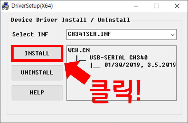 4. 폴더 선택 및 설치 후 확인되는 팝업창에서 INSTALL 클릭하고 완료 후 종료