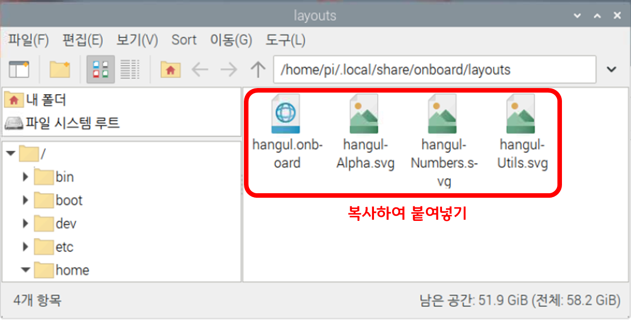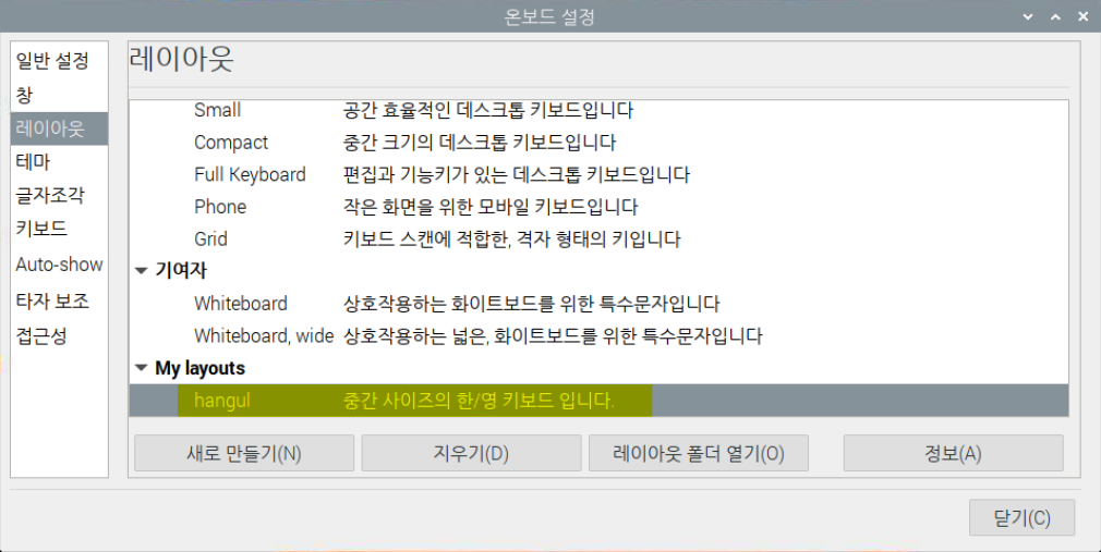 2. 아래 한글 레이아웃 파일을 다운 받고 온보드에 한글 레이아웃 등록.